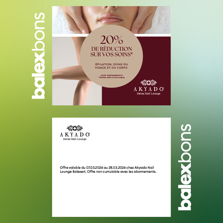 Offer valid from 07.03.2026 to 28.03.2026 at Akyado Nail Lounge Balexert. Offer cannot be combined with subscriptions.