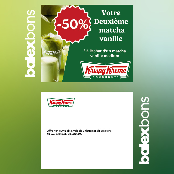 50% off your second vanilla matcha with the purchase of a medium vanilla matcha Offer cannot be combined, valid only at Balexert, from 07.03.2026 to 28.03.2026.