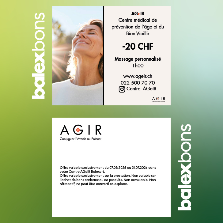 Offer valid exclusively from 07.03.2026 to 31.07.2026 at your AGeIR Balexert Centre.
