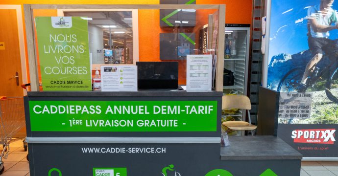 We offer, to those who cannot travel to do their shopping, a purchasing & delivery service for the modest sum of Sfr. 10.- (2 bags with caddiePass).