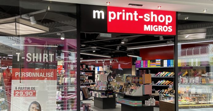 Migros Print-Shop is the Geneva digital and offset printing service. Migros Print-Shop Balexert covers all your document printing and finishing needs: printing and photocopying in colour or black and white of posters, visiting cards, flyers, bindings, brochures, plastic coating, greeting cards, correspondence cards, t-shirt printing etc. You will also find a vast range of home and office stationery here. Under the same label, we also supply a full range of Migros stationery articles and those of the leading brands in the sector, including Caran d’Ache, Exacompta, Clairefontaine, Moleskine, Paperblanks and Rhodia.