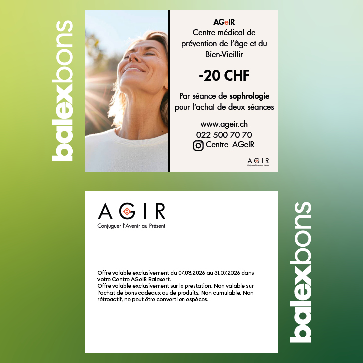 Offre valable exclusivement du 07.03.2026 au 31.07.2026 dans votre Centre AGeIR Balexert.
