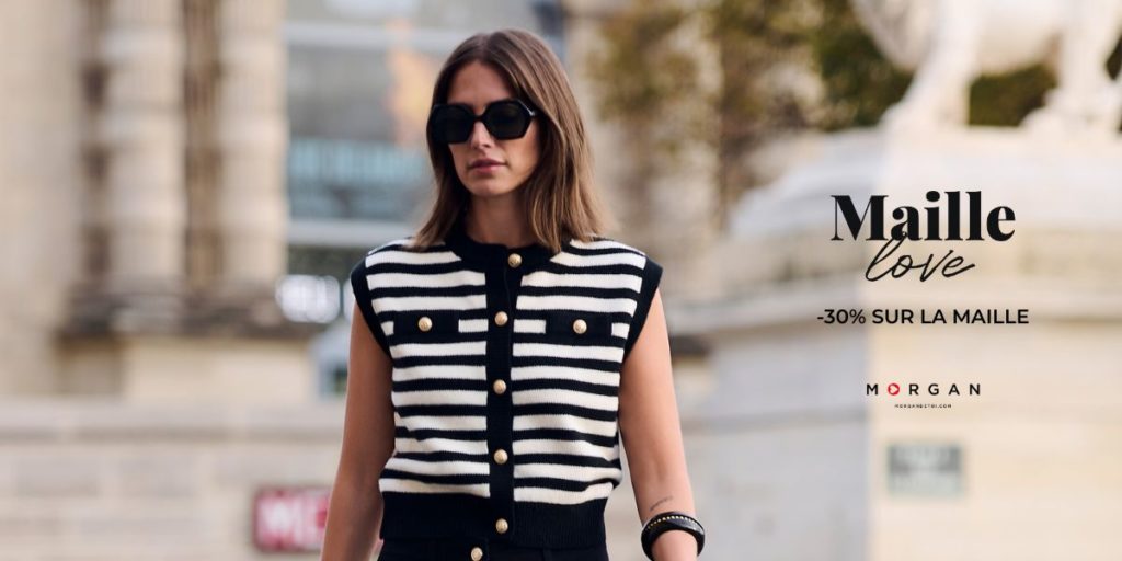 Bénéficiez de 30% de réduction sur les robes, tops, pulls et gilets en maille. Cette réduction est valable uniquement sur les articles en maille de la collection PE26.