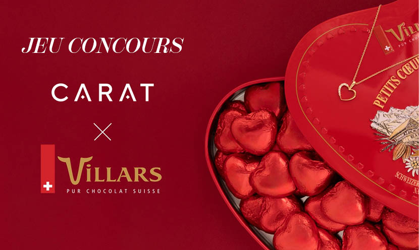 Gagnez un bon d’achat Carat d’une valeur de 100 CHF et une sélection de chocolats Villars d’une valeur de 92,65 CHF (conditions générales disponibles sur carat.ch)
